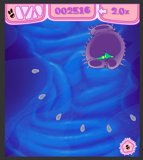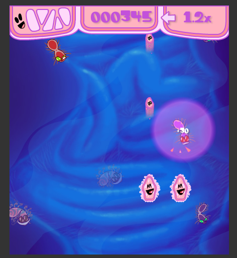 Path-o-Gen is a vertically-scrolling shooter that follows the escape of young germ Gen from out of the bowels of Dick, a guy who finds joy in making people miserable. Collect power-ups, face bacteria and bile alike until you reach the menacing Bacteriophage, all while spreading your disease of happiness. Go for the high score and explore different strategies to earn unique performance medals and showcase your undeniable awesomeness.